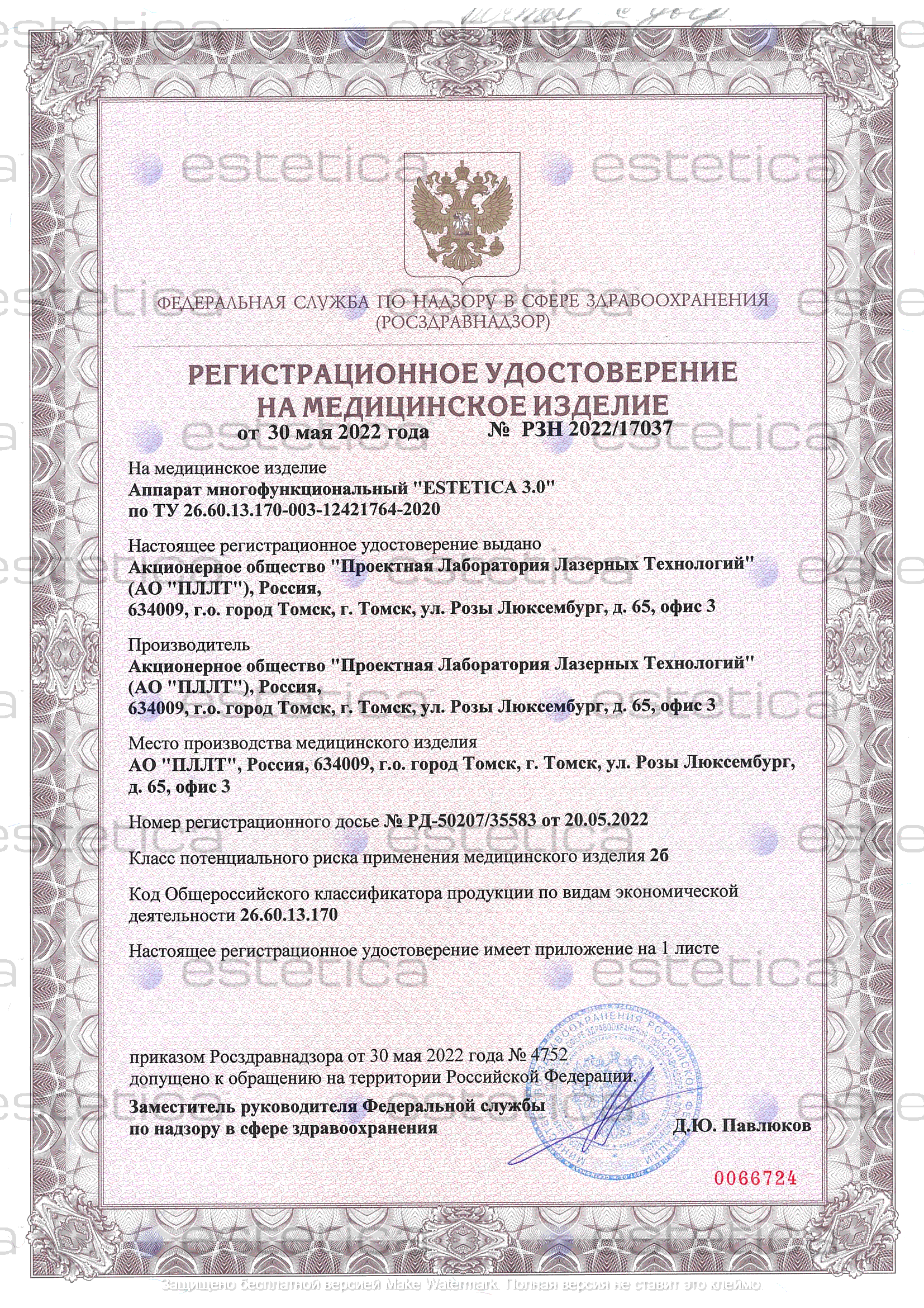 Производитель Estetica является владельцем торговой марки Estetica и разработчиком собственного оборудования для эстетической медицины.