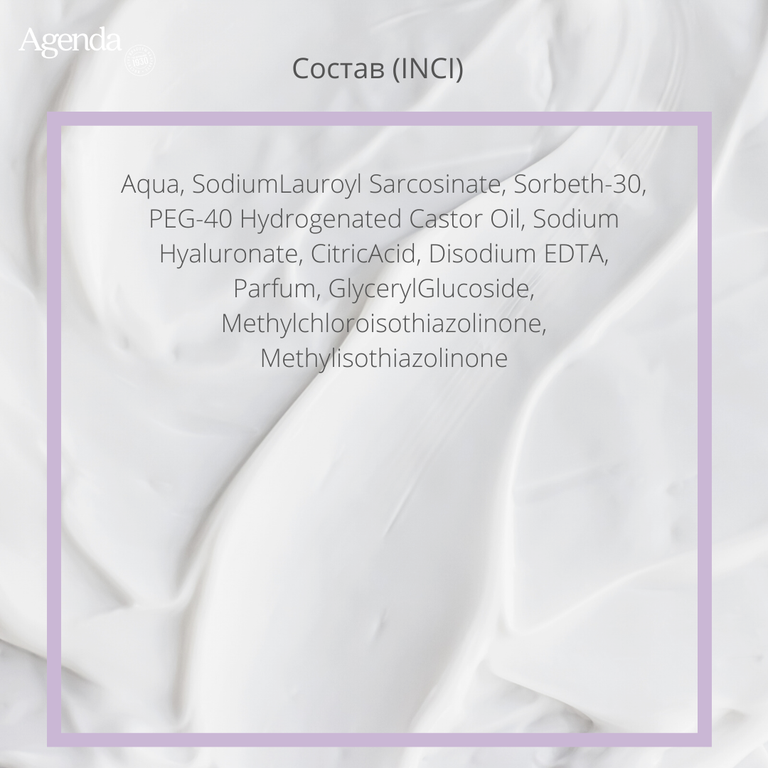 Aqua, Glycerin, PEG-40 Hydrogenated Castor Oil, Sodium Hyaluronate, Disodium EDTA, Citric Acid, Parfum. Glyceryl Glucoside, Methylchloroisothiazolinone, Methylisothiazolinone.